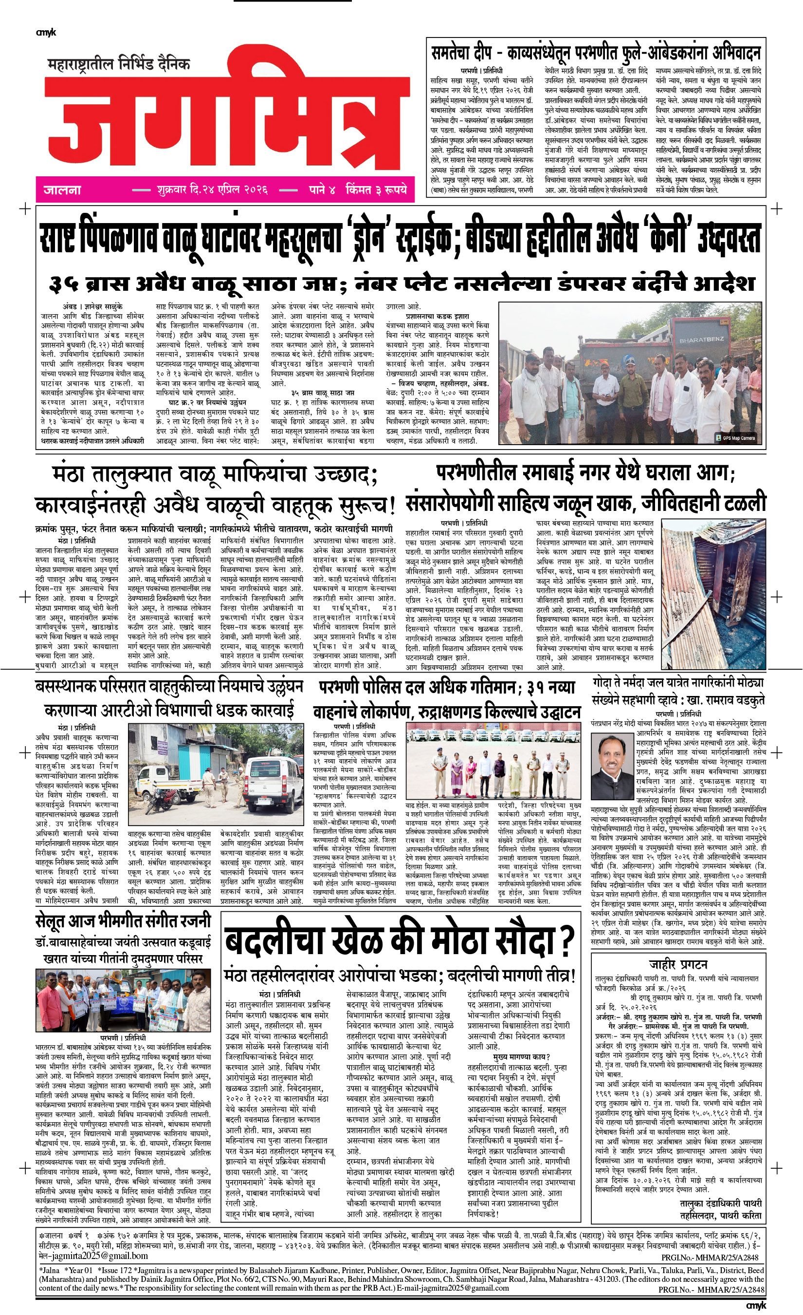 मुख्य संपादक : बालासाहेब कडबाने, कार्यकारी संपादक : बिलाल शेख - कार्यालय :- जगमित्र, बाजी प्रभु नगर जवळ, नेहरू चौक, परळी वै. ता.परळी वै. जि.बीड (महाराष्ट्र) मो.9423912525, 9822974925,jagmitra2010@gmail.com << First << 1 >> Last >> पहिले पान दुसरे पान तिसरे पान चौथे पान पाचवे पान सहावे पान सातवे पान आठवे पान Visitor Counter free online counter